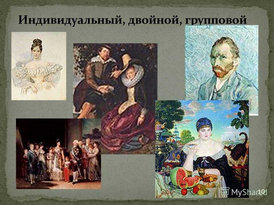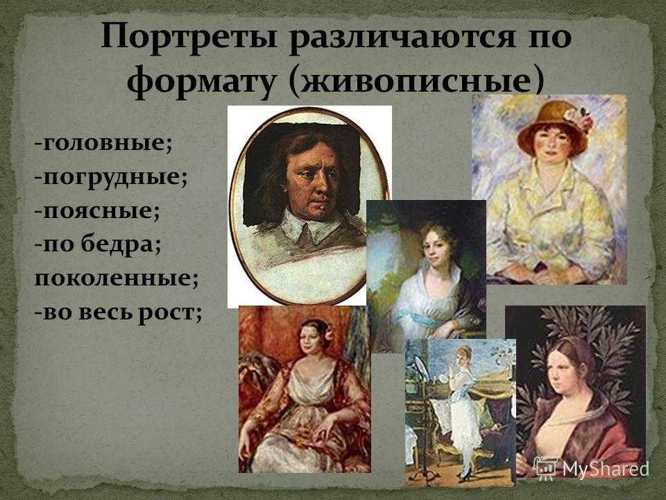 используется поясное, погрудное, оплечное изображение фигура зачастую даётся на нейтральном фоне