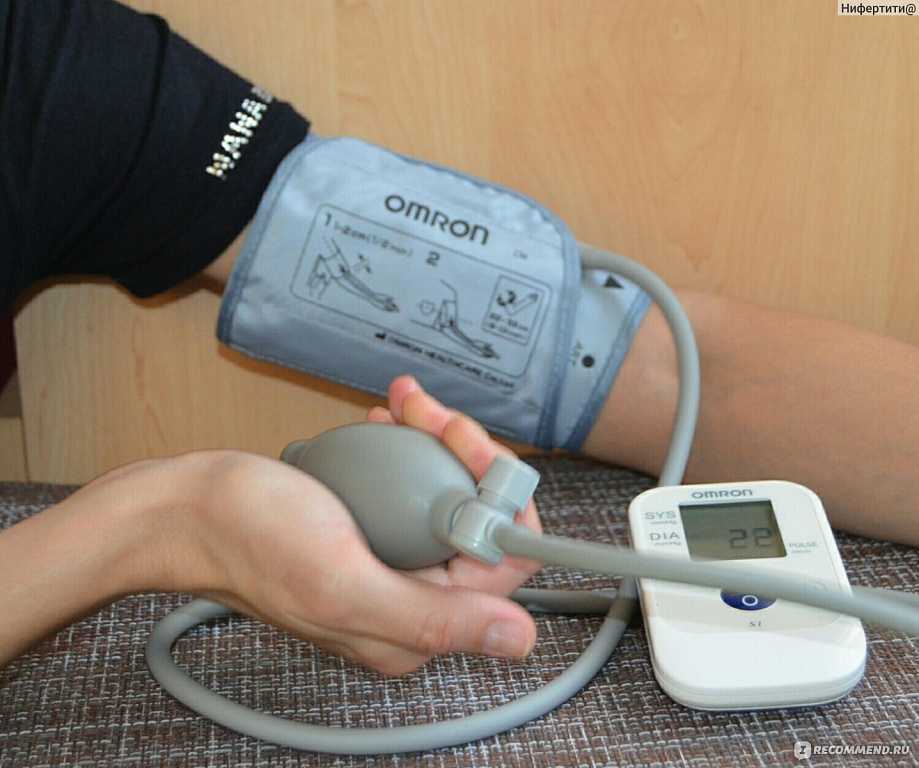 - Начинают измерение, нагнетая воздух до 200 мм рт. ст. У гипертоников цифра может достигать 220 мм рт. ст. Если манжета сдавливает руку до боли, лучше ослабить её на руке и повторить процедуру снова.