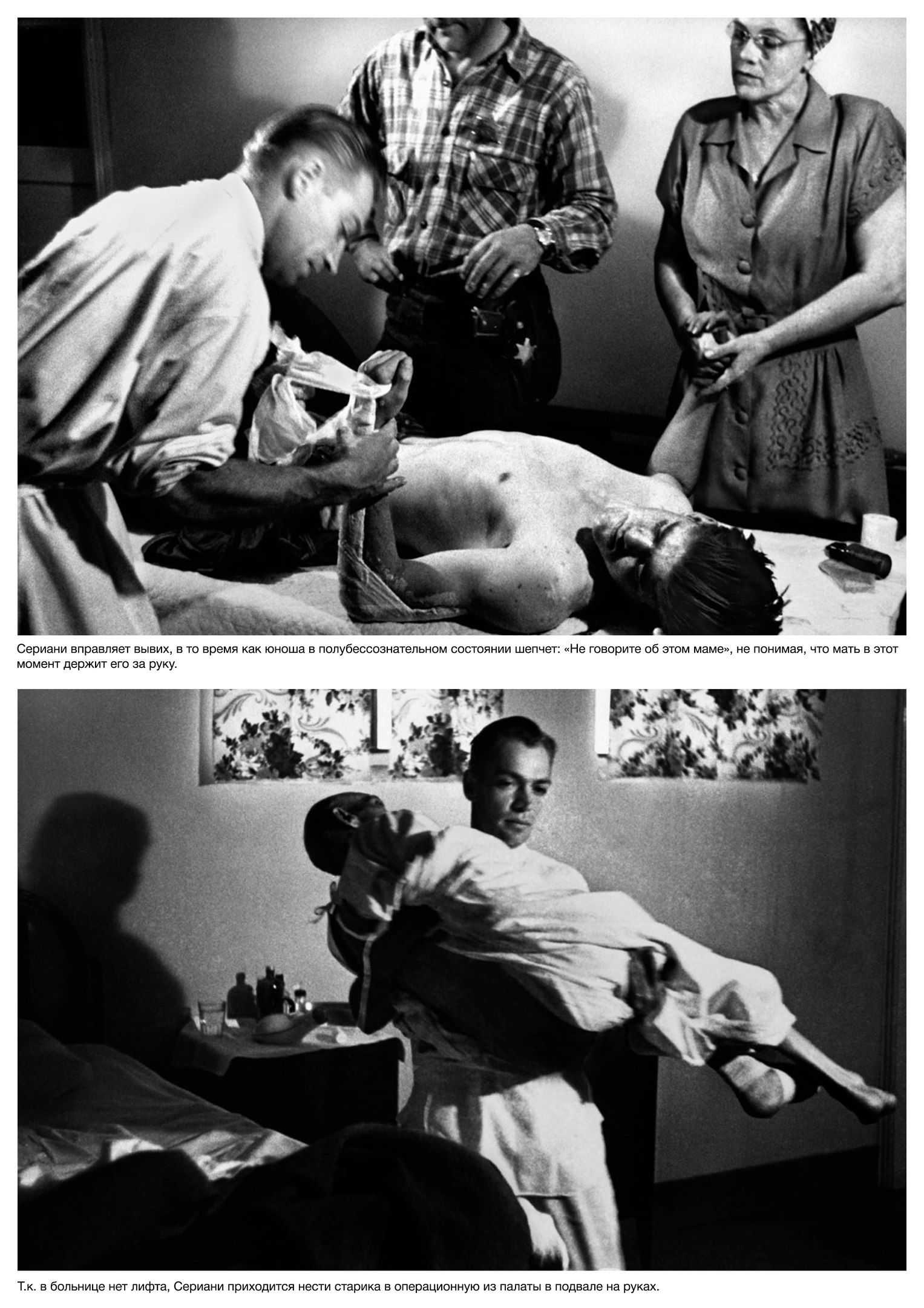 В августе 1948 года Смит сфотографировал доктора Эрнеста Чериани в городе Креммлинг, штат Колорадо, в течение нескольких недель, освещая тяжелую работу врача в малонаселенной западной среде, пытаясь справиться с ситуациями жизни и смерти. (Одно из самых ярких изображений показывает, что Чериани выглядит измученным на кухне после того, как он сделал кесарево сечение, во время которого умерли и мать, и ребенок.) Эссе Country Doctor было опубликовано Life 20 сентября 1948 года. был описан Шоном О’Хаганом как «первая расширенная редакционная фоторепортаж».