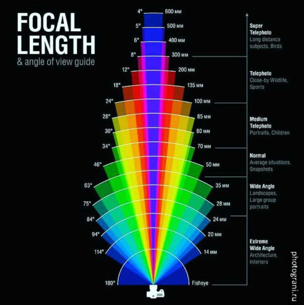 Оно указывается на корпусе, в каталоге, на ценнике в магазине и т.д. Фокусное расстояние сообщает нам одну простую вещь — угол обзора. И как следствие предназначение конкретного объектива.