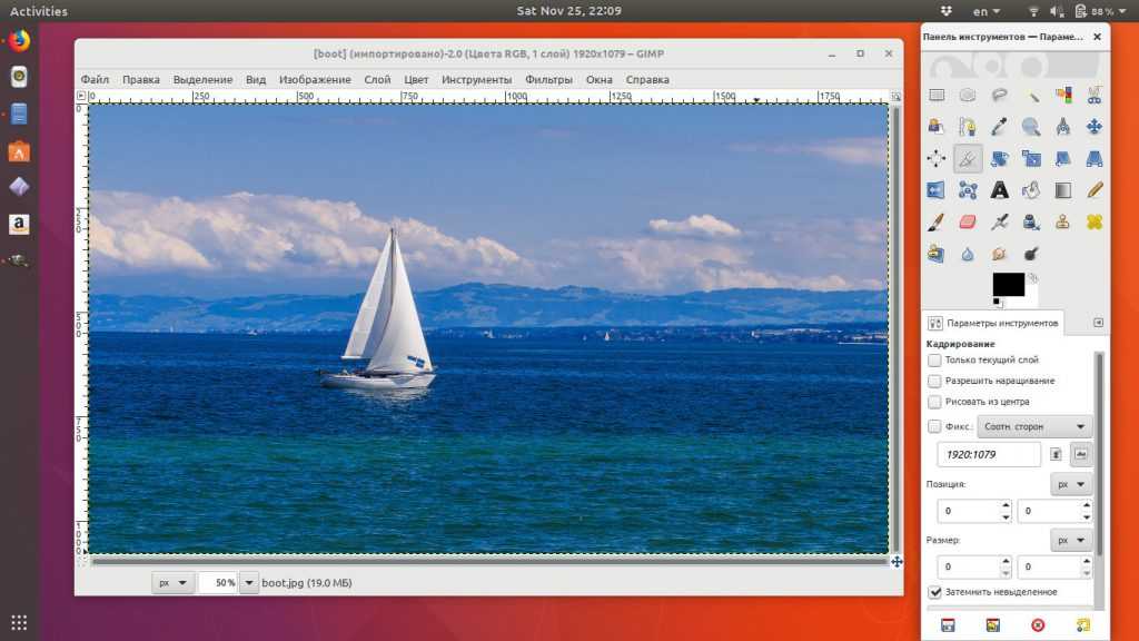 Для примера возьмем фотографию яхты и попробуем обрезать изображение с помощью инструмента “Кадрирование”. Предположим, что мы хотим сделать яхту покрупнее, а часть неба и моря вокруг просто отбросить.