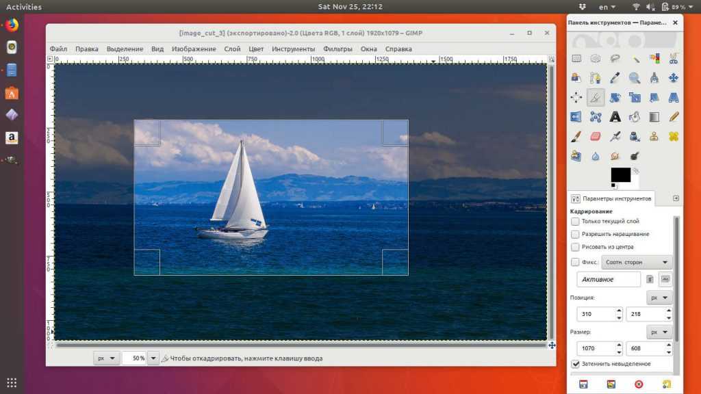 После того, как границы обрезки подогнаны с ювелирной точностью можно осуществить само кадрирование. Для этого в gimp есть два способа: