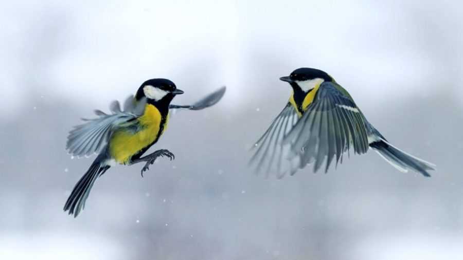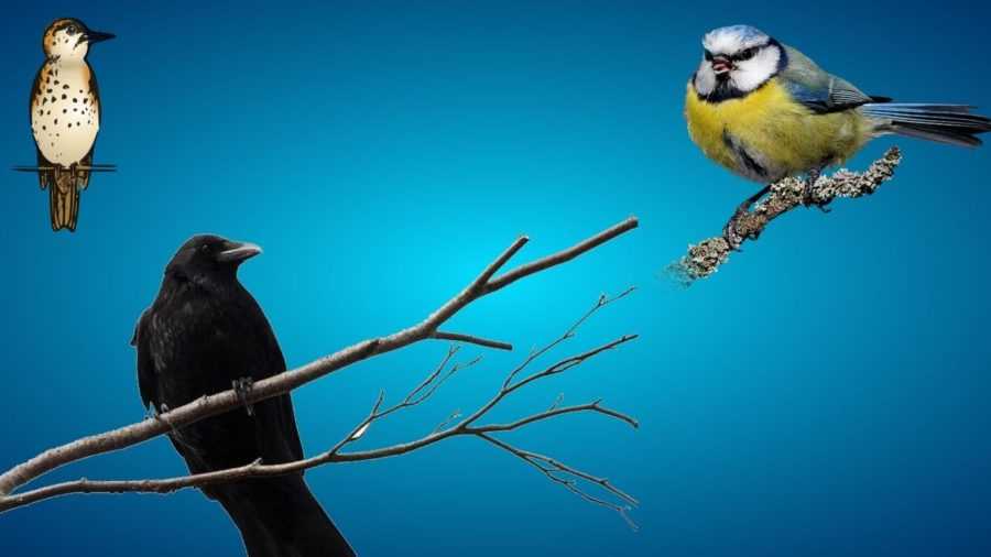 Два воробушка, синичка, — сгибают большой, указательный, средний пальцы на правой руке;