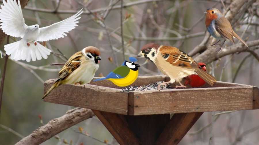 Посчитаем птиц в кормушке, — воспитанники сжимают, затем раскрывают кулаки;