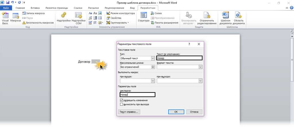 Как сформировать заполняемые поля шаблона напрямую в MS Word