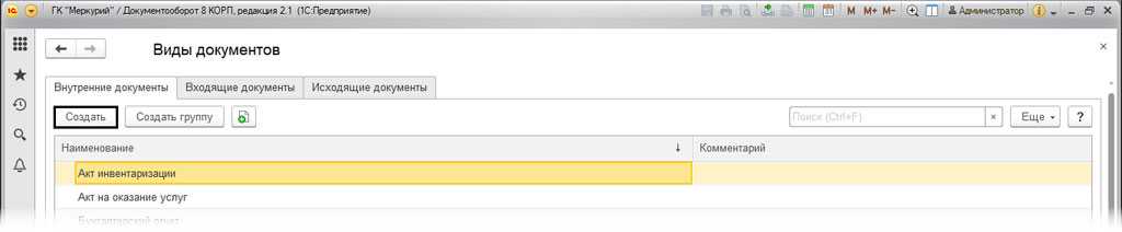 Нажимаем на кнопку «Создать» и создаем нужный вид документа.