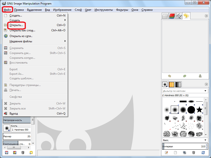 Тем не менее, чаще всего требуется сделать прозрачным фон не у картинки, создаваемой «с нуля», а у готового изображения, которое следует отредактировать. Для этого, опять в меню заходим в раздел «Файл», но на этот раз выбираем пункт «Открыть».