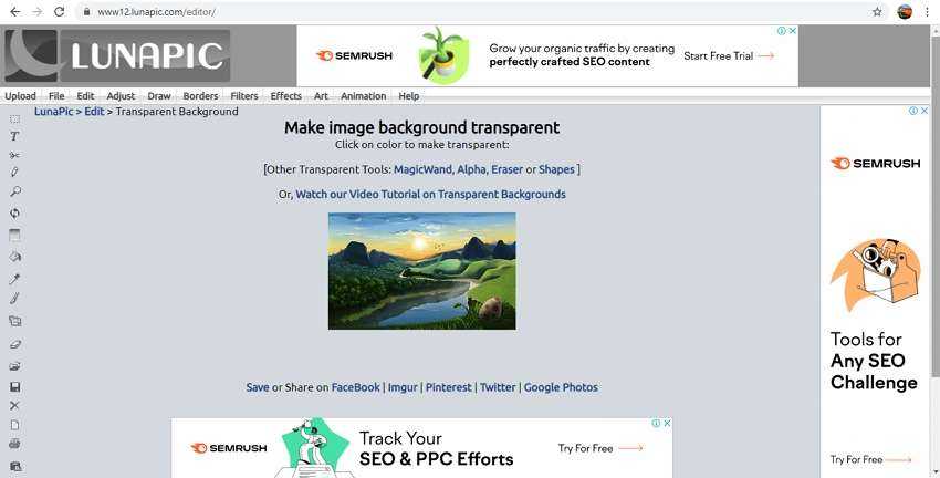 Шаг 1: Откройте https://www12.lunapic.com/editor/?action=transparent и нажмите кнопку Выбрать файл, чтобы импортировать изображение.
