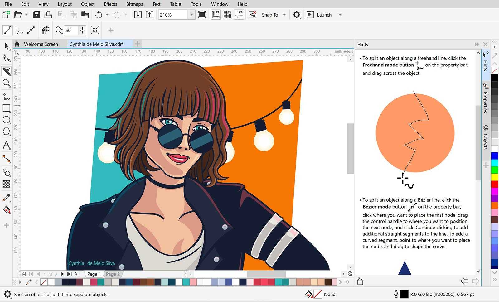 CorelDraw включает в себя все инструменты, необходимые графическому дизайнеру. С ее помощью можно отрисовывать макеты для печати и веб-интерфейсы, создавать сложные фотоманипуляции, графику для рекламы и социальных сетей и рисовать через графический планшет. В программе можно также редактировать проекты других схожих приложений, к примеру, вектор из Adobe. Присутствует большая библиотека шрифтов, в том числе русскоязычных, которые можно свободно настраивать под свои запросы. Присутствует модуль трассировки растровых изображений в вектор, благодаря чему можно создавать реалистичные векторные картины. Корел включает в себя несколько отдельных приложений для растра и вектора, которые свободно интегрируются друг с другом.