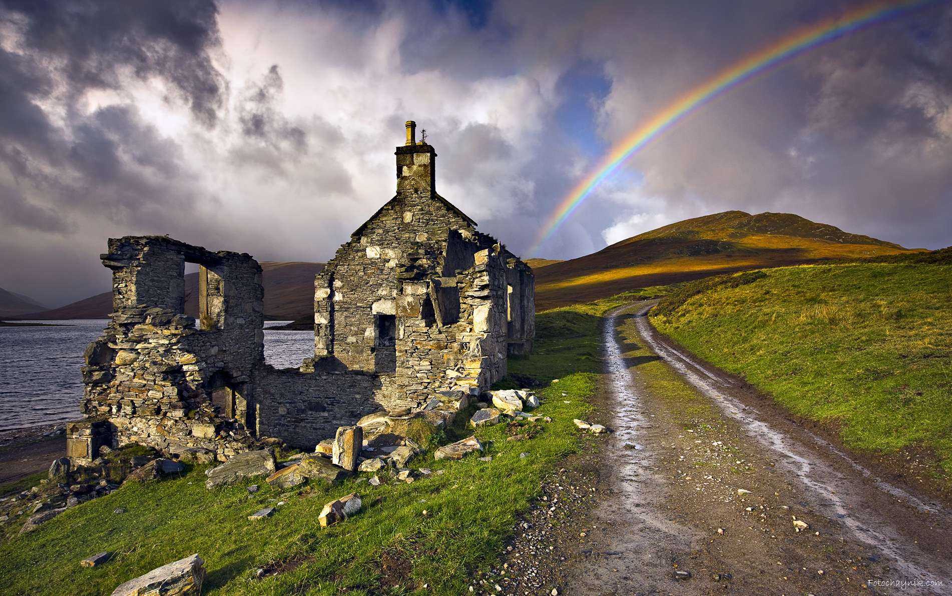 В этом случае, логичным будет сконцентрировать своё внимание на какой-то части радуги, изящно вписав его в окружающий пейзаж