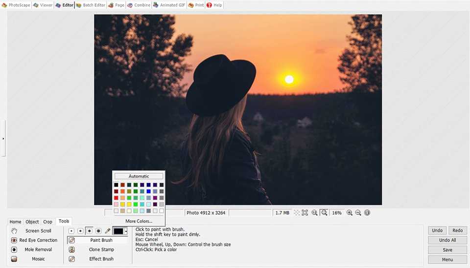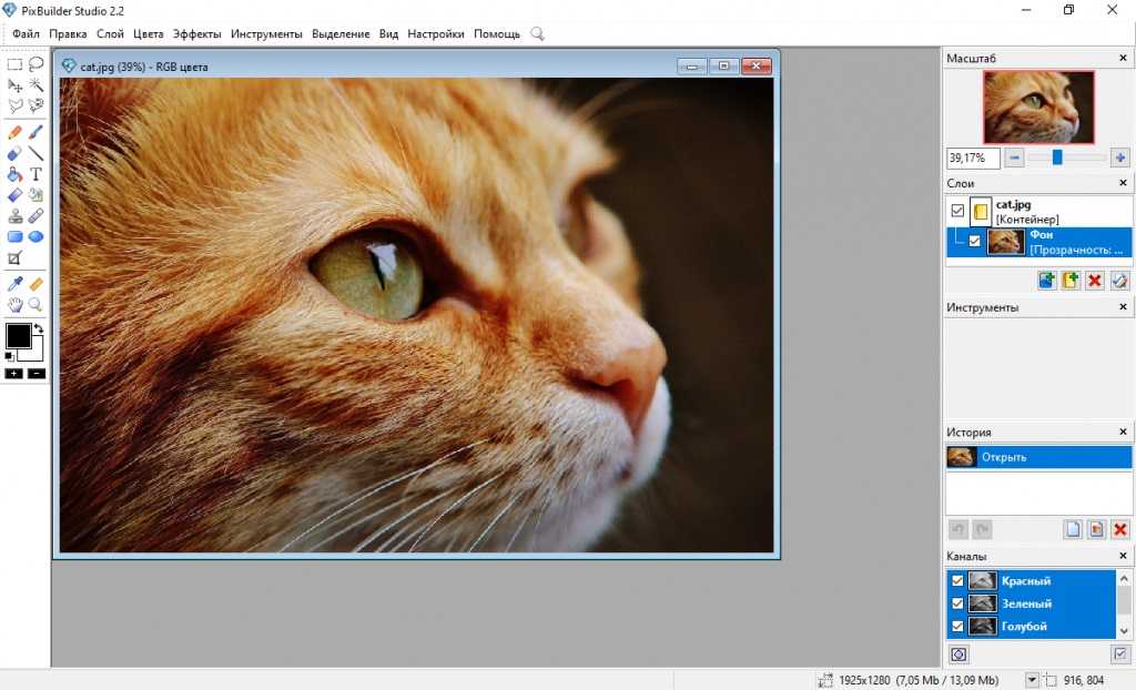 Простой в освоении редактор фото, в котором можно работать со слоями, рисовать на изображении и накладывать фильтры. По функционалу PixBuilder Studio мало отличается от других похожих бесплатных программ. Картинку можно обрезать и повернуть на любой угол, скорректировать цветовой баланс и работать сразу с несколькими файлами сразу. Отдельным преимуществом можно назвать функцию выделения, с помощью которой можно удалить и отредактировать любой предмет на фото. Софт сохраняет всю историю правок, так что пользователь может откатить изменения файла практически к самому началу редактирования.