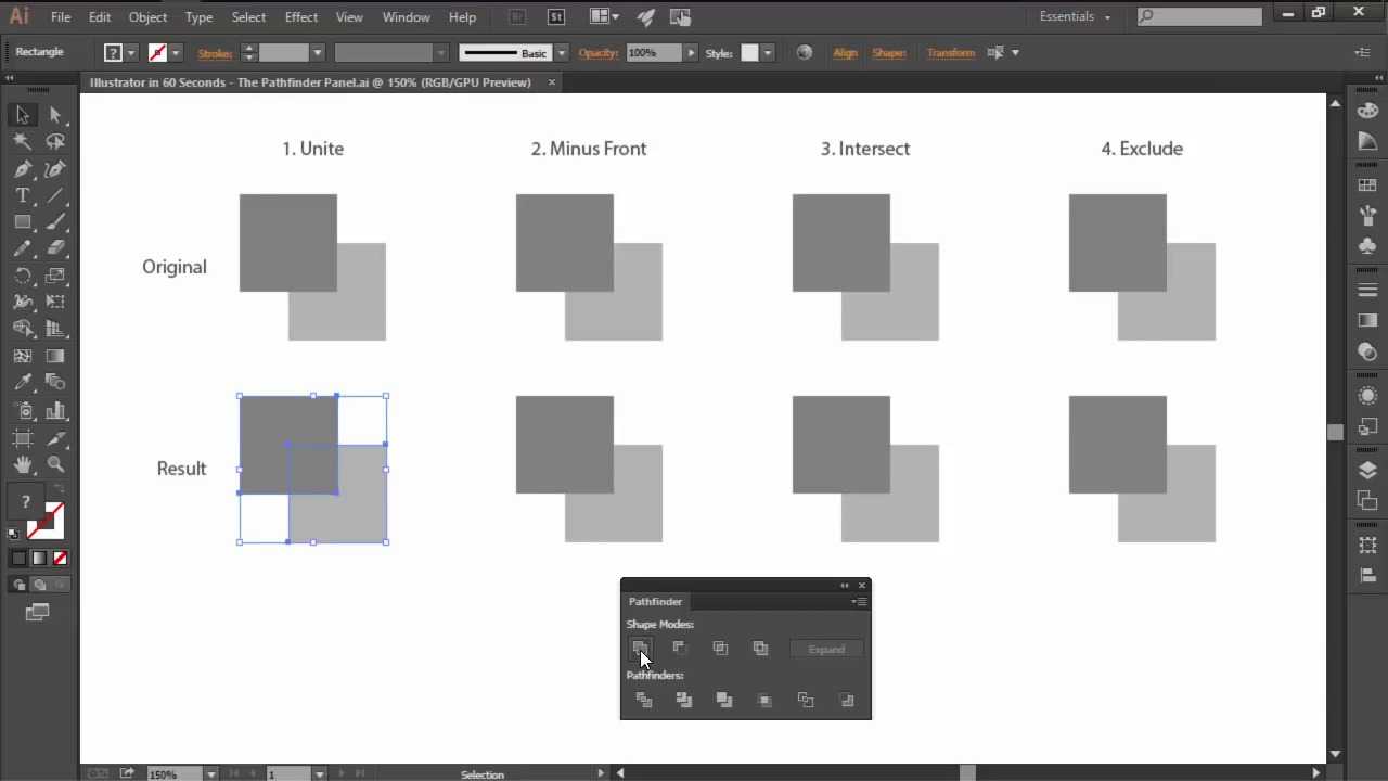 Иллюстратор за 60 секунд: Как использовать панель Pathfinder (Обработка Контуров)