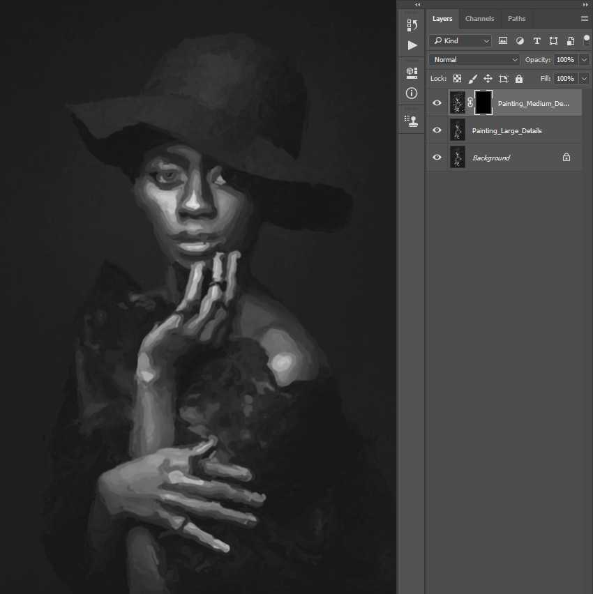Третий вариант нашего изображения даст нам возможность снизить детализацию на человеческих фигурах, чтобы стереть эффект излишней реалистичности нашего рисунка.