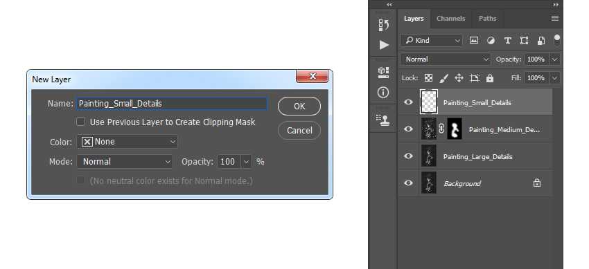 (Слой – Новый – Слой) и называем его «Крупные детали».