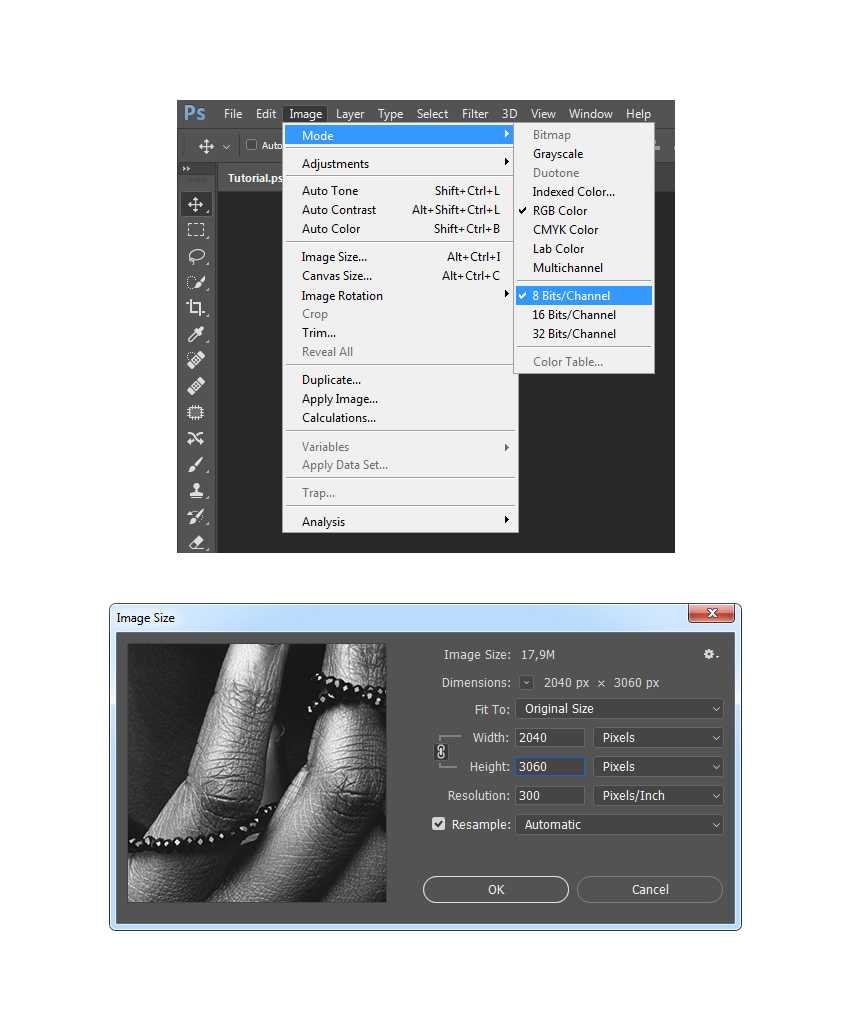 (бит/канал). Чтобы проверить, перейдите в меню Image – Mode