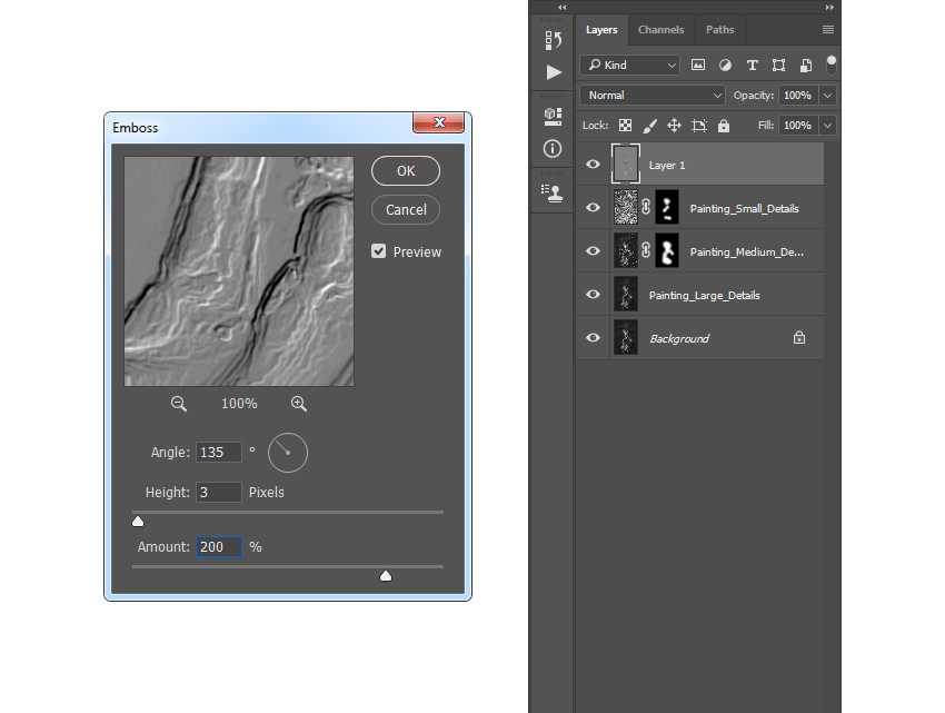 (Фильтр – Стилизация – Тиснение). Устанавливаем Angle