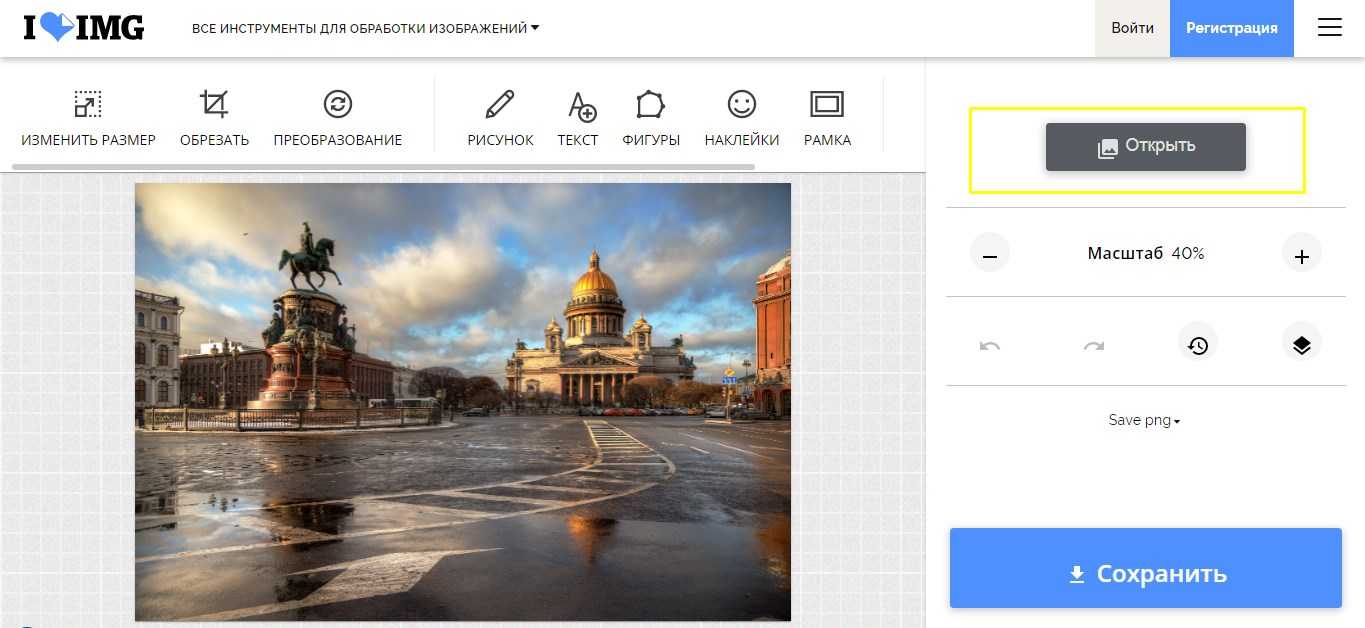 - Перейдите на главную страницу сайта и загрузите картинку.