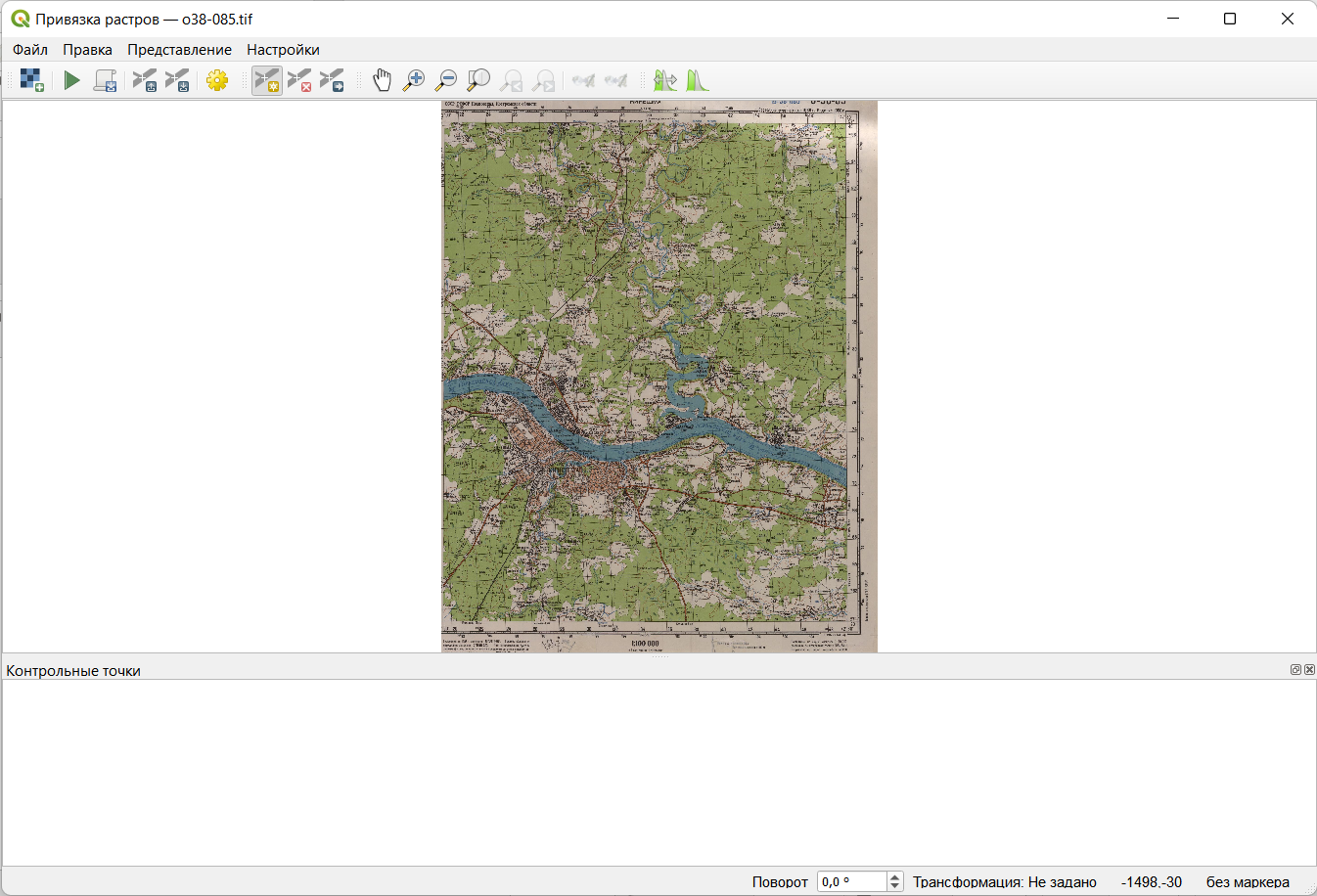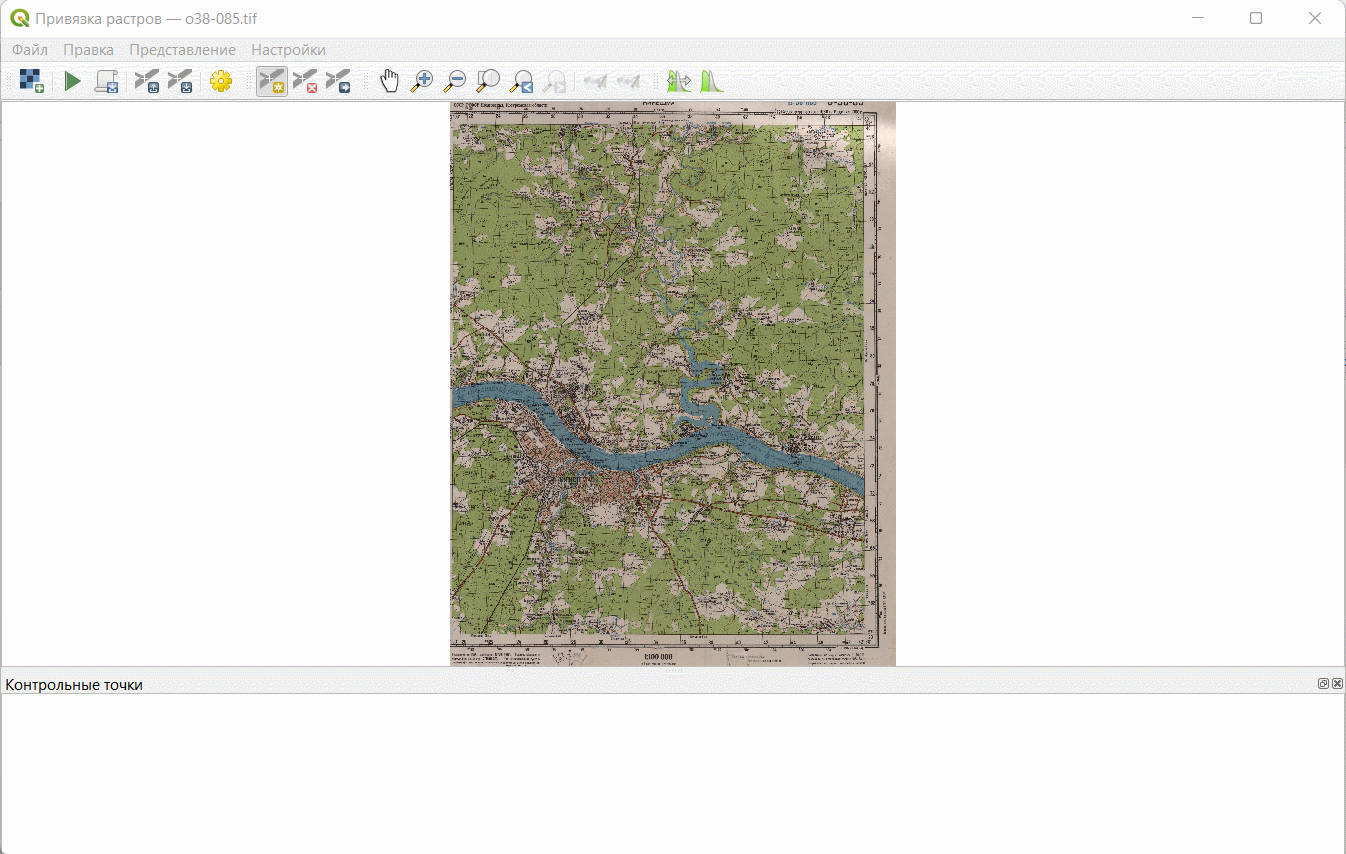 Откройте окно привязки и снова загрузите в него исходное изображение топографической карты.