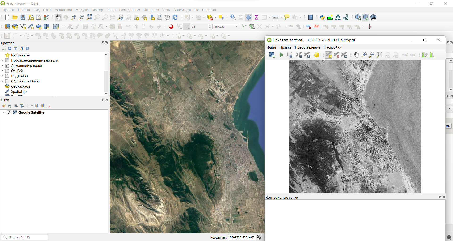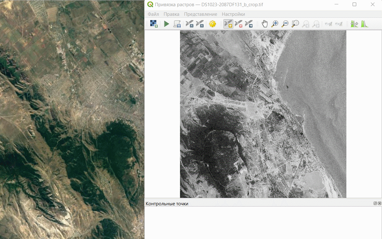 В QGIS запустите инструмент для привязки растров («Растр» — «Привязка растров»)