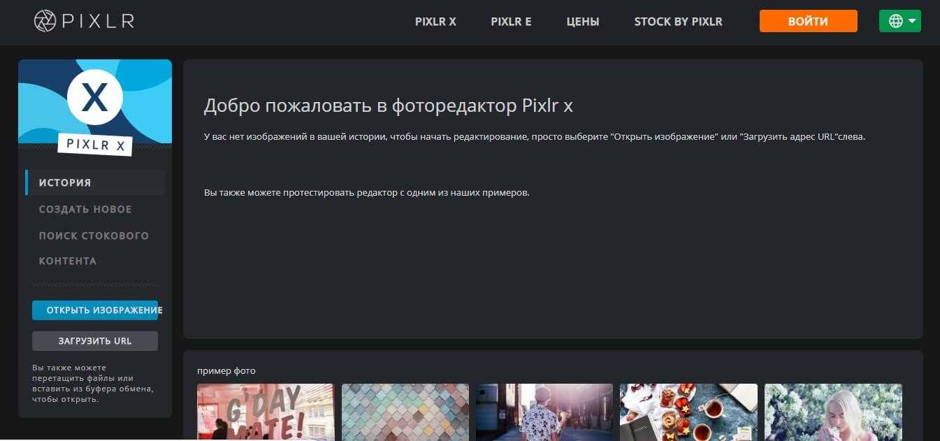 Сервис Pixlr https://pixlr.com/ позволяет делать ретушь в ручном режиме по фото онлайн. На выбор пользователя представлены две разновидности редактора: Pixlr Editor, интерфейс которого очень напоминает Фотошоп, есть работа со слоями, и Pixlr Express – для быстрой обработки. В экспресс-версию можно загрузить изображение с компьютера, указать адрес картинки в интернете или снять фотографию вебкамерой.