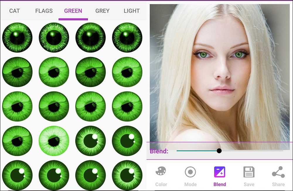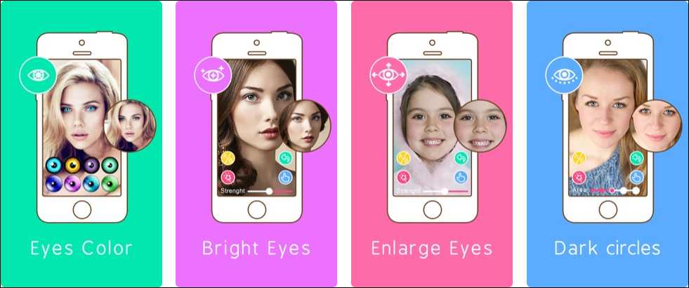 Редактор Eye Color Changer для iOS предлагает более 150 вариантов цветных эффектов контактных линз, а также цвета и эффекты зрачка. Его технология распознавания лиц автоматически определяет положение вашего глаза, и вы можете регулировать форму, размер и вращение глаза.