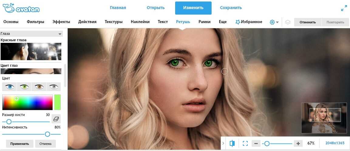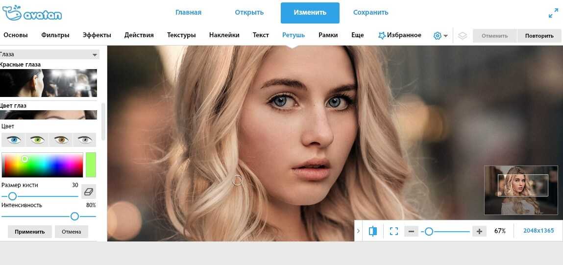В интернете существует много онлайн-редакторов, в которых можно обработать фотоснимок. Но большинство предлагает такие продвинутые опции, как фоторедактор глаз, после покупки премиум-доступа. Мы рассмотрим онлайн сервис Avatan – один из немногих, где функция доступна бесплатно.