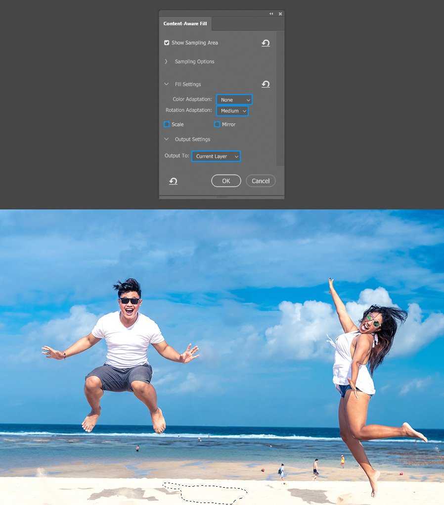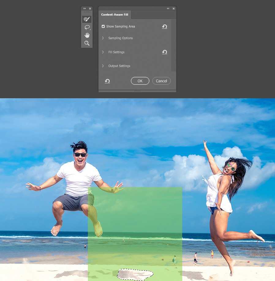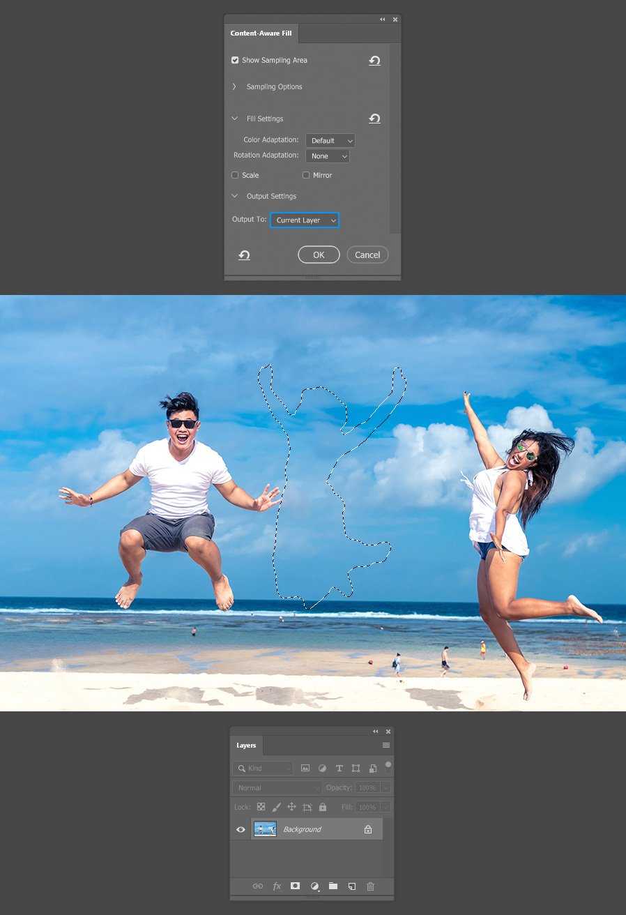 Несмотря на то, что новая функция Content-Aware Fill (Заливка с учетом содержимого) была улучшена за счет большего количества элементов управления для настройки областей пробы и заливки, иногда вам придется вносить небольшие изменения после ее применения к изображению, чтобы сделать его просто идеальным. Но тяжелую работу наверняка будет намного легче выполнять со всеми новыми функциями, полученными в последнем обновлении.
