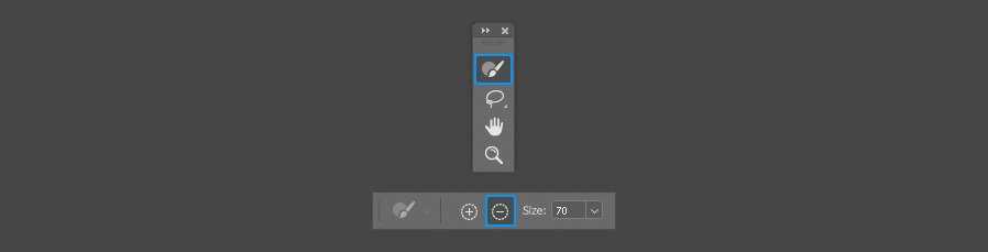 Выберите инструмент Sampling Brush Tool (Кисть для проб) (B). Обязательно установите режим Substract (Вычитание) на верхней панели настроек инструментов и установите размер кисти, который вам удобнее.