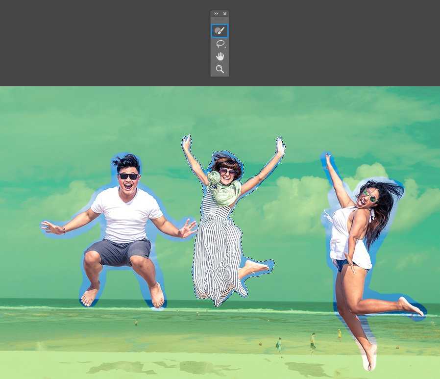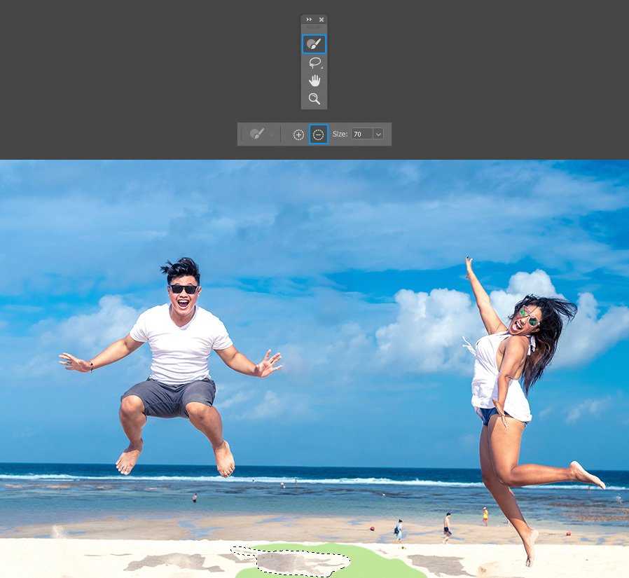 Используя инструмент Sampling Brush Tool (Кисть для проб) (B), закрасьте те части, которые не хотите использовать в качестве образца для замены. В этом случае, я просто исключу 2 других человека на изображении, чтобы мы были уверены, что из этих областей не будут выбраны пиксели для замены.