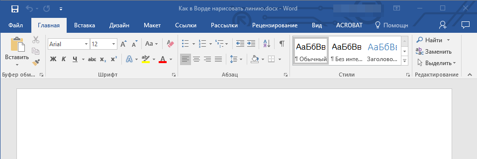 Ставим курсор в место, где должна быть линия. В верхнем меню Word кликаем: