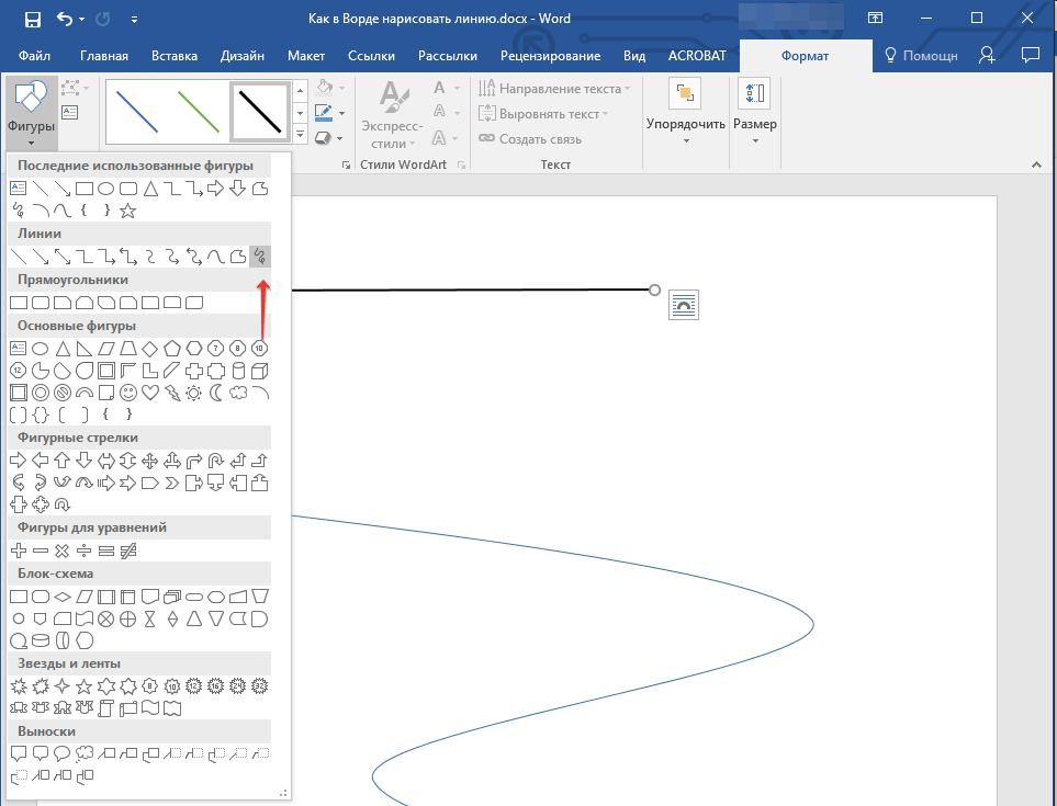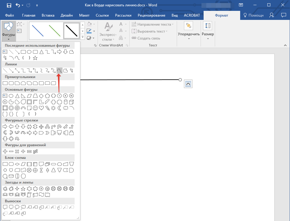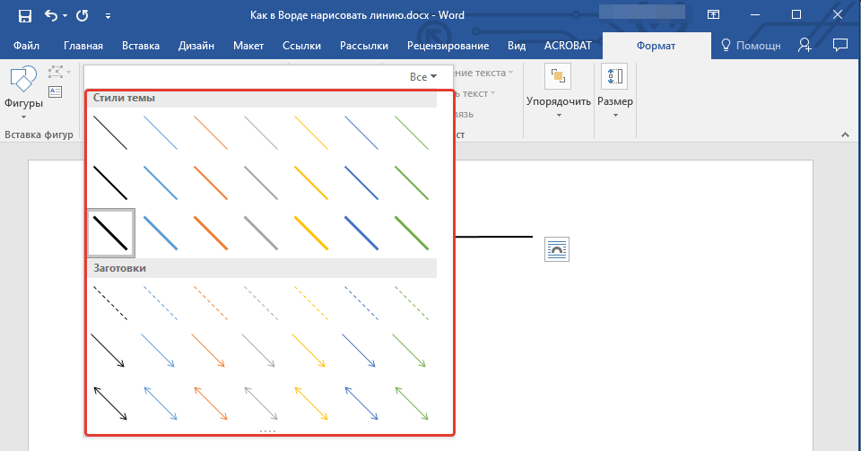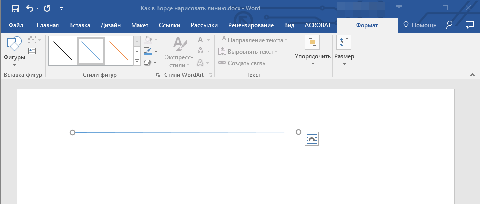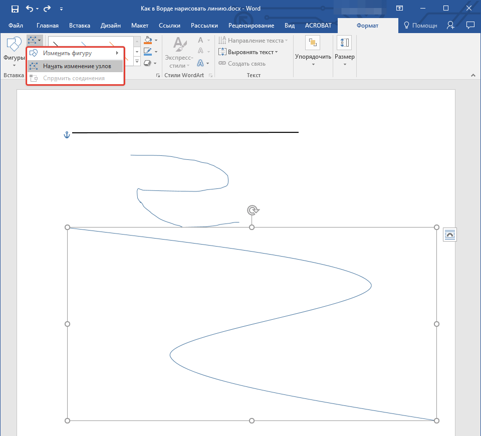 Чтобы переместить линию, просто кликните по ней, чтобы отобразилась область фигуры, и переместите ее в желаемое место документа.