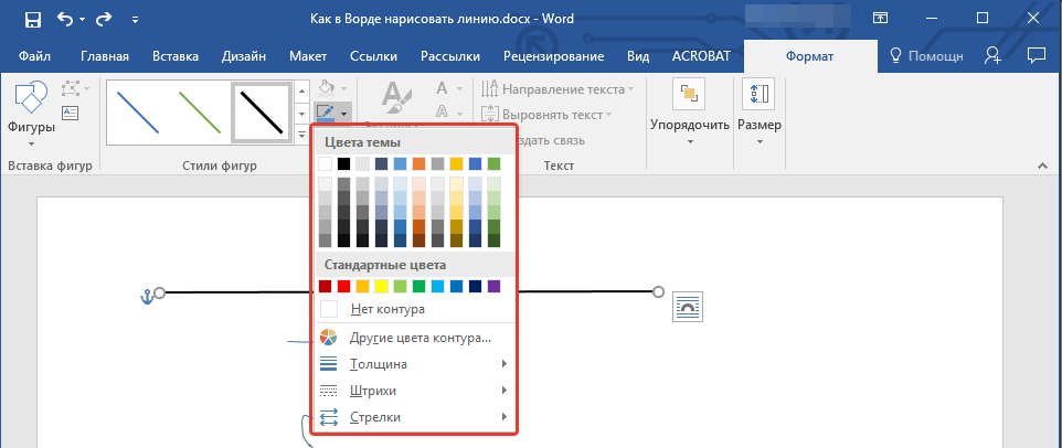 Чтобы изменить цвет фигуры, нажмите на кнопку “Контур фигуры”, расположенную в группе “Стили”, и выберите подходящий цвет.