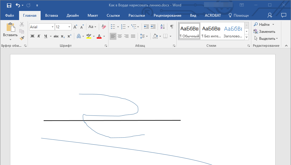 Чтобы линия была строго горизонтальной, следует держать нажатой клавишу Shift и одновременно рисовать линию.