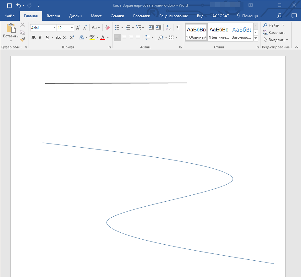 Ровную горизонтальную и вертикальную линии можно создать предыдущим способом с помощью инструмента «Границы». В нём есть варианты горизонтальной и вертикальной линии. Если же линию нужно провести в произвольном порядке, используем следующий способ.