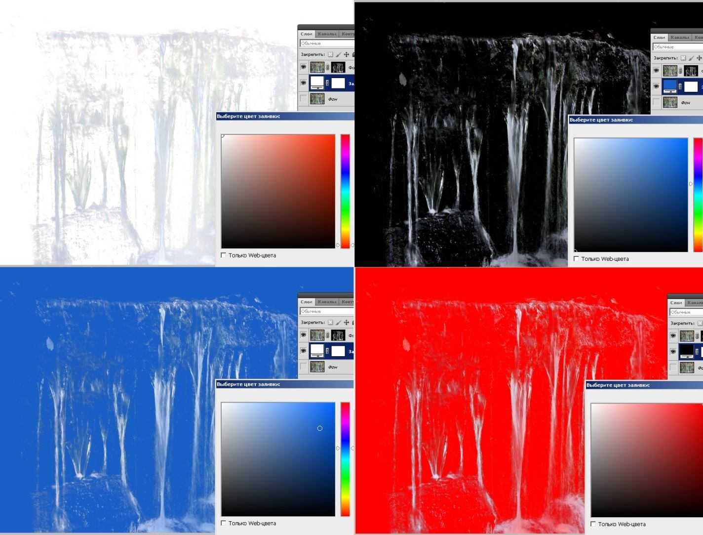 Любое изображение в фотошоп представляется как наложение проекции нескольких цветов. Представьте себе фонарик с лампой, например, зелёного цвета. Наложите на него лист бумаги, частично закрашенный чёрным, серым и белым. Свет будет проходить через светлые зоны. Чем меньше насыщенность чёрного, тем ярче проекция. Аналог такого листка-накладки и есть канал «зелёного». Аналогично — остальные каналы. Накладываясь друг на друга они дают цветную картинку.