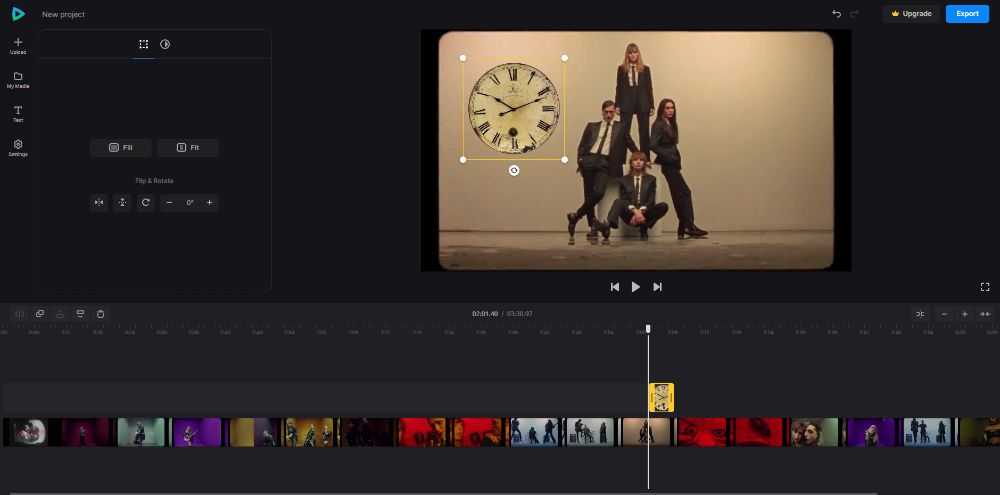- Используйте другие инструменты, чтобы управлять таймлайном и монтировать видео, если в этом есть потребность. Например, можно добавить другие фотографии, склеить видео, настроить переход и расположить надписи.