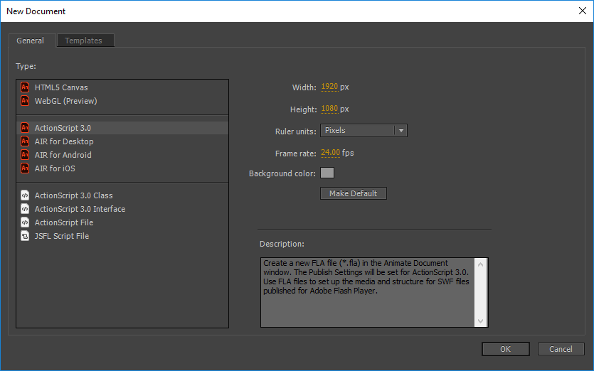 Adobe Animate CC — это ребрендинг Adobe Flash Professional CC, в программу добавили несколько нововведений. Ещё со старым названием завоевала огромную популярность среди художников, аниматоров и разработчиков инди-игр. Векторные принципы построения позволяют создавать спрайты для любого разрешения. Для рисования подойдёт любая версия, какую сможете достать. Инструменты рисования не меняются уже много лет, а лишь незначительно улучшаются. Я буду использовать Adobe Animate CC, но всё написанное будет применимо и для старых версий Adobe Flash Professional. К слову, в последнее время компания Adobe перешла на модель помесячной подписки для получения доступа к своим продуктам вместо дорогостоящего одноразового лицензирования. Сейчас цена за использование Adobe Animate CC составляет 20 долларов в месяц.