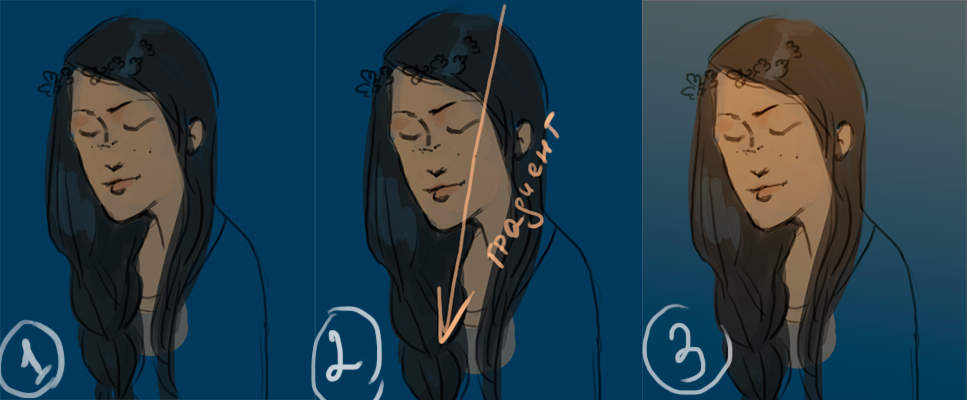 Обычно в рисовании мы используем белый фон, потому что технически проще использовать темный цвет на светлом фоне, чем наоборот. Но в цифровом рисунке в этом нет никакой нужды. На самом деле, вы можете начать с черного фона, но это такая же плохая идея, как начать с чисто белого. На практике, самый нейтральный цвет – серый с яркостью в 50%.