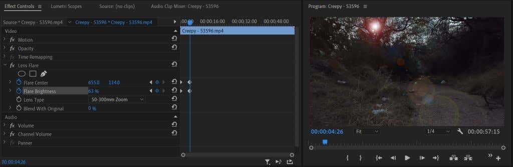 Если вы не знакомы с использованием ключевых кадров в Adobe Premiere Pro, сначала прочитайте нашу статью о ключевых кадрах, чтобы вы хорошо разобрались с основами. Затем выполните следующие шаги, чтобы анимировать световой эффект бликов.