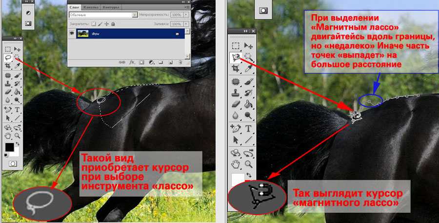 пытается угадать и распознать контуры на фотографии. Распознав их, магнитное лассо цепляется за контур цепкими лапами, оставляя специальные якоря. Если обычное лассо приходится водить на глаз, то и Магнитное лассо старается найти контур объекта и создать линию выделения автоматически. Остается лишь водить мышкой близко к краям объекта и задать в настройках инструмента правильные параметры. О чем мы сейчас и поговорим.
