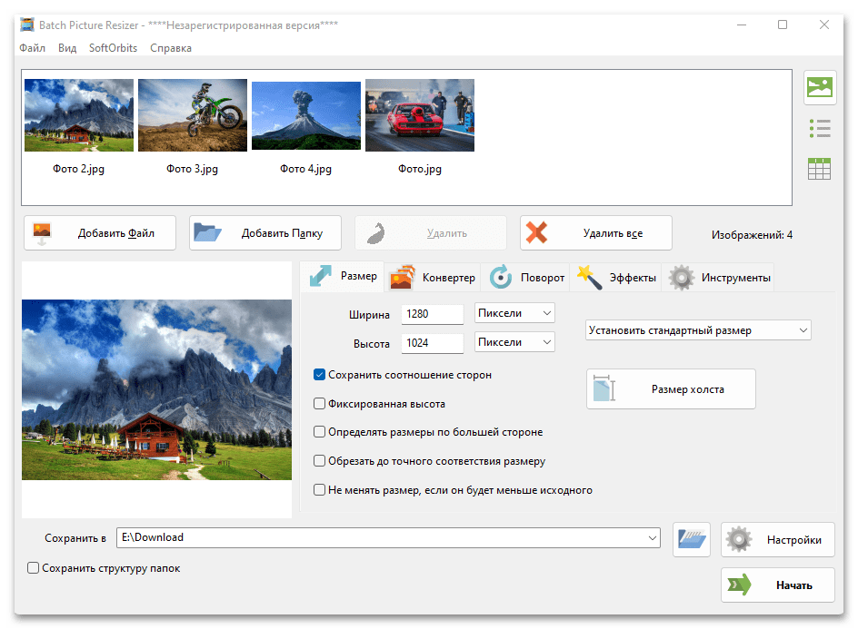 - нет ограничения по количеству одновременно сжимаемых фотографий