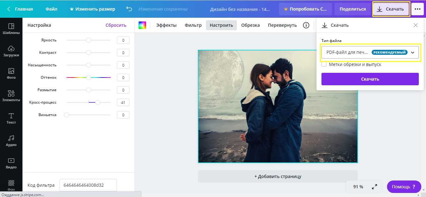 Не обязательно ограничиваться одним снимком: вы можете добавлять их сколько угодно на первичное изображение, если того требует замысел композиции. А можете создавать коллажи, подписывать их и украшать различными графическими элементами. Для сохранения нажмите на кнопку «Скачать», не забыв отметить необходимый формат изображения.