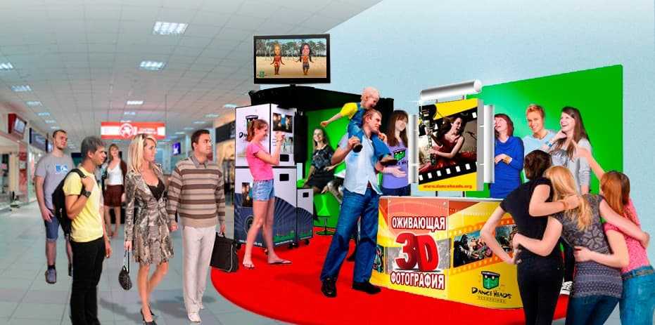 - Стационарное размещение. Студия устанавливается в местах высокой проходимости: торгово-развлекательных центрах, кинотеатрах, клубах, городских парках, зоопарках, дельфинариях – везде, где отдыхает много людей.