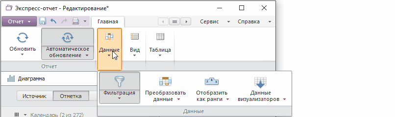 агрегатов. Выбранные агрегаты сохраняются для текущего отчёта и при