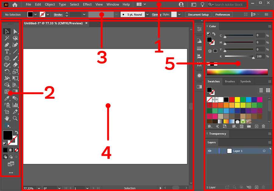 Рабочее пространство Adobe Illustrator состоит из следующих элементов: