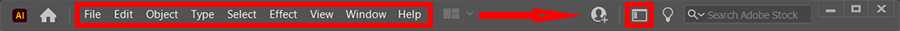 Строка поиска в Adobe Illustrator находится в правой части панели приложения. Условно, поиск в программе Adobe Illustrator разделен на две части: