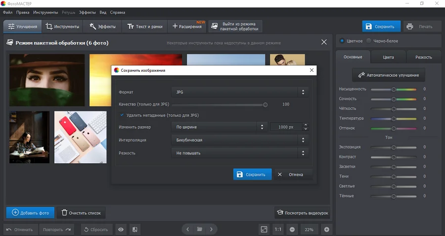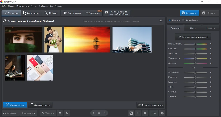 Как уже упоминалось, ФотоМАСТЕР позволяет работать с одним или несколькими медиафайлами. Рассмотрим, как это делается.
