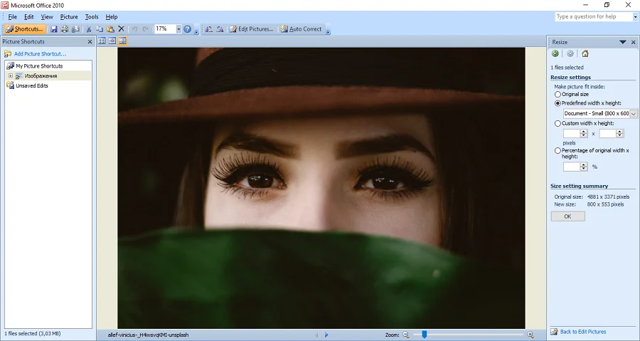 Способ №3.Как изменить размер изображения вДиспетчере рисунков Microsoft Office
