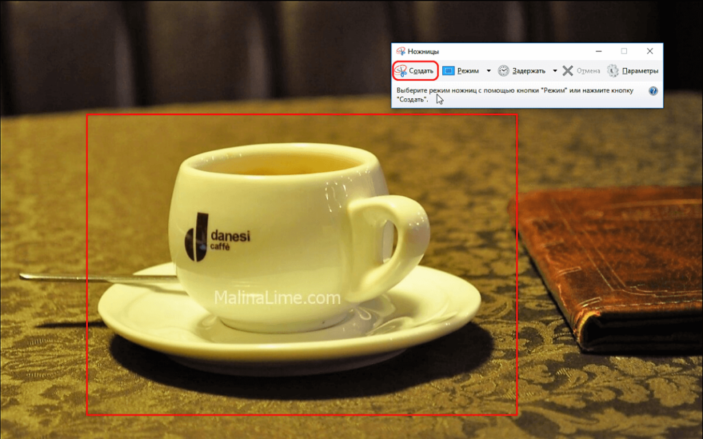 В меню «Ножниц» выберите опцию создать. Удерживая левую кнопку мыши выделите фрагмент изображения.