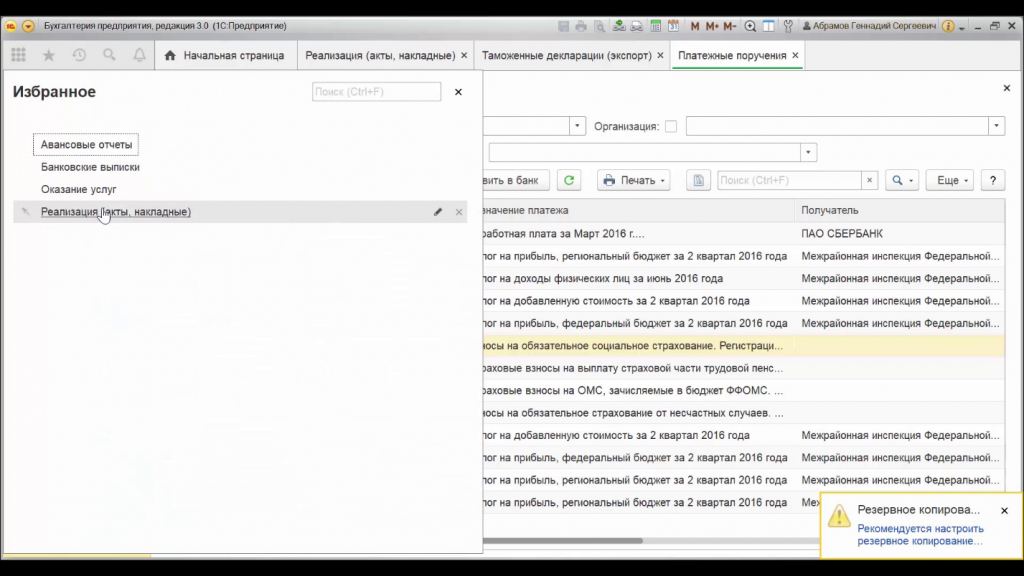 Программы 1С позволяют вынести наиболее необходимые лично вам функции на удобную панель быстрого доступа. Это очень полезно для того, чтобы ускорить работу. Сюда можно вынести избранные функции, панель истории, которая позволяет отслеживать изменения и оповещения.